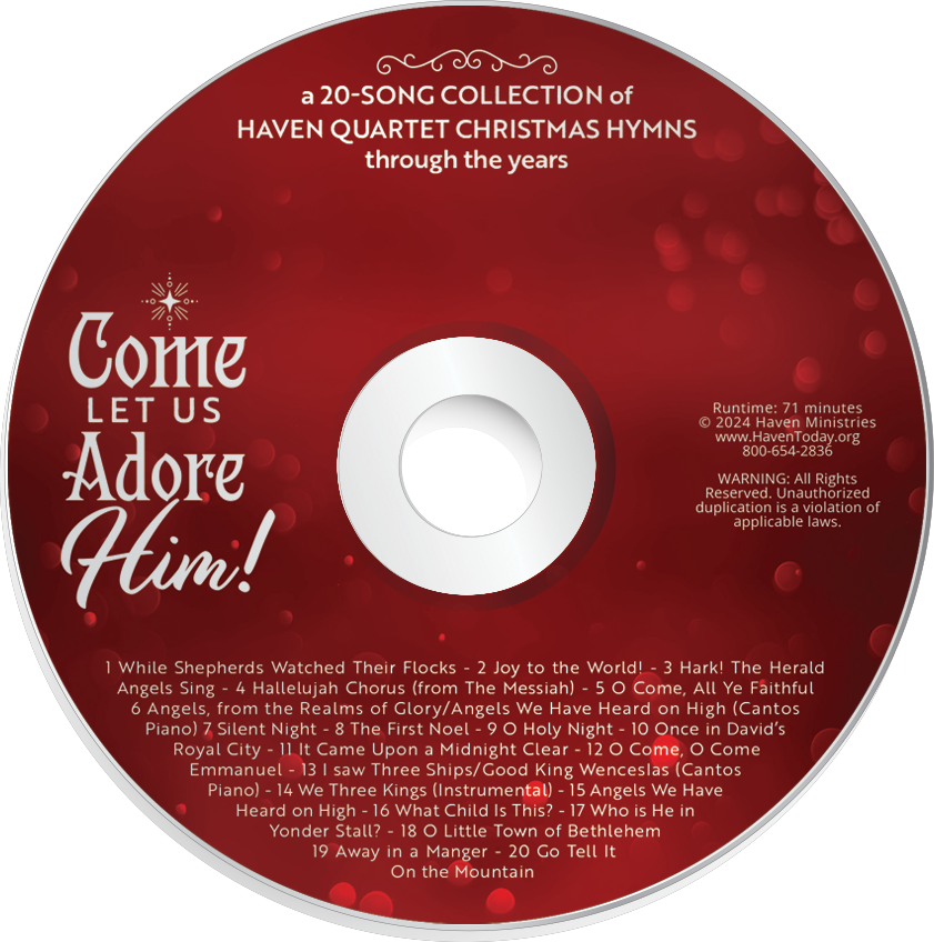 Designed to be personally reflective, these stories speak to your soul and add depth and meaning as you worship the Lord this Christmas season. The book also includes a 20-song CD collection of Christmas hymns performed by the Haven Quartet.