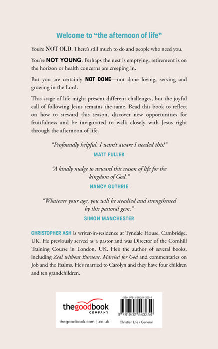 In Not Old, Not Young, Not Done, pastor and author Christopher Ash encourages readers to embrace this season with faith and intentionality. With pastoral wisdom and biblical encouragement, he shows how to follow Jesus wholeheartedly now, while preparing your heart and habits for the years ahead. Reflection questions are included for discussion with a spouse or friends.